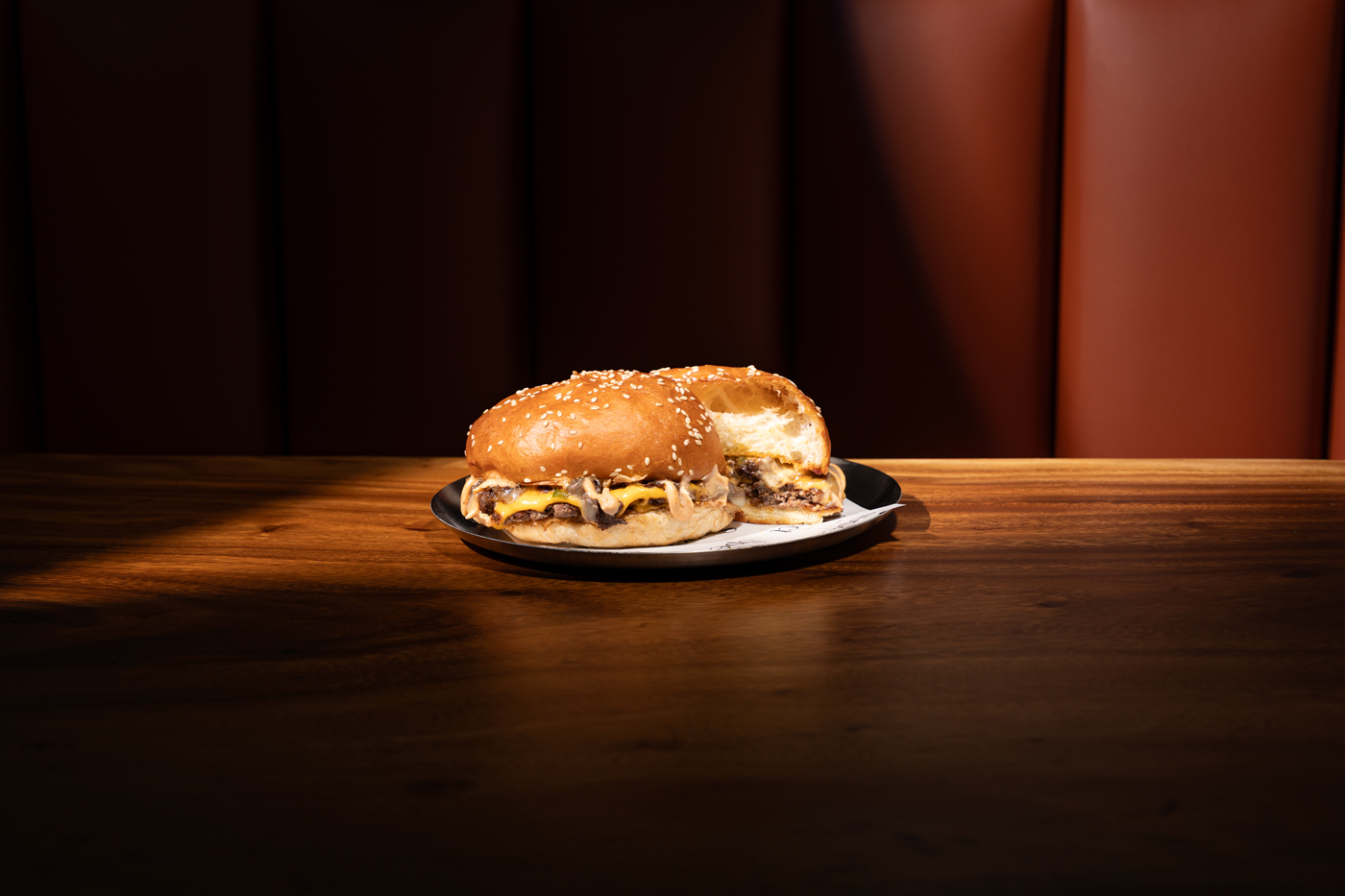 شريحتين لحم واجيو مع قطعتين جبنة التشيدر والبصل الطازج والصوص الخاص يمكن طلبه كيتو